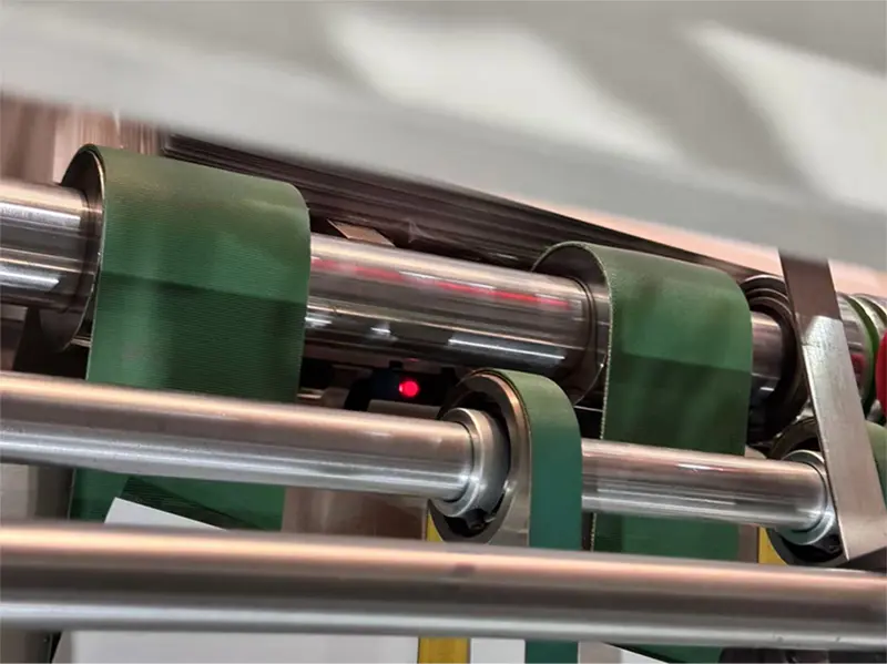 Indukční elektrické oko, snímající délku papíru, pokud se délka papíru změní, pás se zrychlí a přepážka navíjecího stroje se převrátí a vyrazí papír.